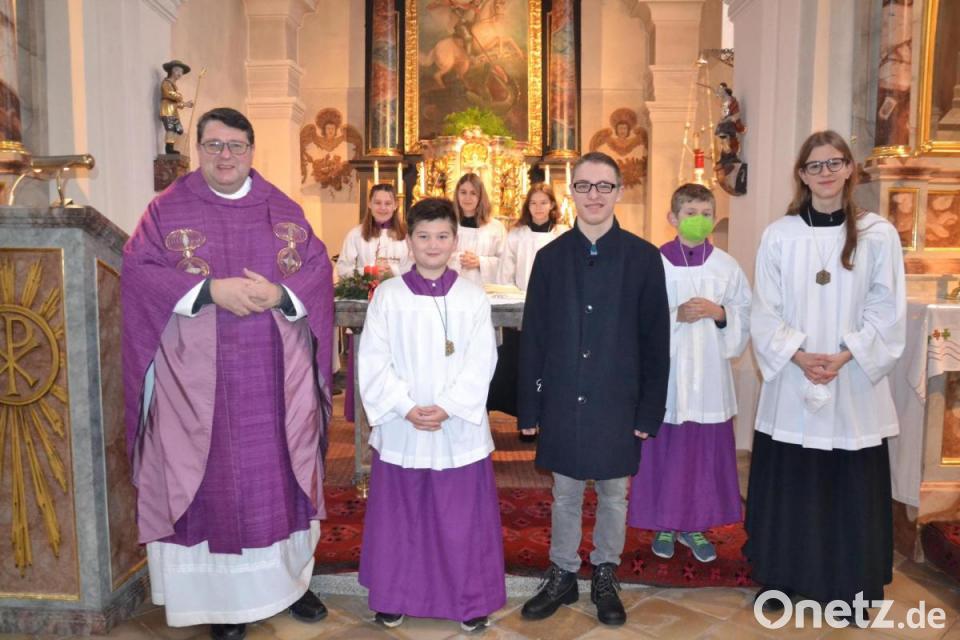 Am ersten Adventsonntag wurde Ben Bodensteiner als neuer Ministrant in die Schar der Messdiener in der Kirche aufgenommen. "Darüber freuen wir uns in Etzgersrieth", sagte Pfarrer Udo Klösel. Oberministrant Dominik Ach führte aus, dass Bodensteiner seit seiner Kommunion auf diesen Dienst in der Expositur vorbereitet. Vor dem Geistlichen bekundete Bodensteiner seine Bereitschaft. Pfarrer Klösel und Oberministrant Dominik Ach überreichten an den Neuen Plakette und den Ministrantenausweis. Anschließend segnete der Pfarrer alle Ministranten und erbat um Gottes Schutz auf all ihren Wegen ihres Lebens. Theologiestudent Michael Steinhilber trug dazu die Lesungen und die Ministranten die Fürbitten vor.