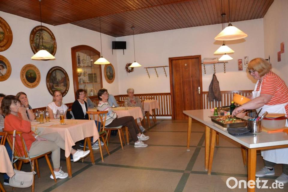 Der Frauenbund hatte zum Kochabend mit Gemüse in das Gasthaus Ach eingeladen. Dabei schauten die 20 Frauen der Fachlehrerin Margret Lukas-Fuchs beim Zubereiten und Kochen über die Schultern. Vorbereitet und mitgebracht hatte die Referentin bereits eine Gemüse-Quiche. Zu Gemüsepizza und Hackfleisch-Gemüse-Strudel gab es auch viele Tipps und Anregungen. Wer den Strudelteig nicht selbst herstellen will, kann auch eine Rolle Pizzateig nehmen. Vorgeführt wurde auch, wie Mangold in der Kartoffel-Pfanne in Kokoscreme zubereitet werden kann. Bei dem Gemüse musste natürlich viel gewaschen und geschnippelt werden, wie auch beim gefüllten Ofenpfannkuchen, der auf das Backblech kam. Alles durfte probiert werden und die Teilnehmerinnen waren begeistert. Alle Gemüsegerichte wie auch die Gemüse-Lasagne und das Hähnchen im Gemüsebett fanden die Frauen sehr schmackhaft. Vorsitzende Lisa Ach dankte Lukas-Fuchs mit Blumen und die Teilnehmerinnen spendeten Beifall. Alle Rezepte konnten zum Nachkochen mit nach Hause genommen werden.