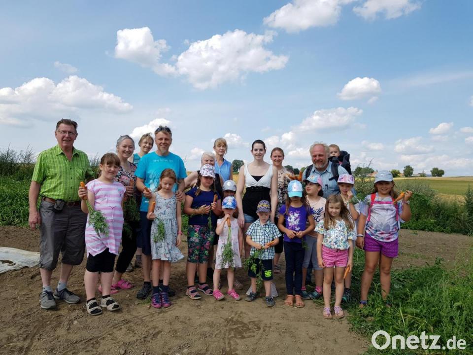„Wir erkunden die Bioland-Gemüsegärtnerei“, hieß es im Ferienprogramm. Fritz Steinhilber von der Bioland-Gemüsegärtnerei in Uchamühle bei Etzgersrieth nahm sich für den Nachwuchs einen Nachmittag Zeit und machte mit ihnen einen Rundgang durch seine Felder und Gewächshäuser mit dabei Enkel Noah. Auch die Eltern, Großeltern und Urlaubsgäste waren dazu gekommen. Der Berner Sennen-Hofhund Sissy bekam viele Streicheleinheiten von den Kindern. Steinhilber informierte zuerst über die Uchamühle wo früher Holz gesägt wurde und zeigte die Mutterkuhherde.