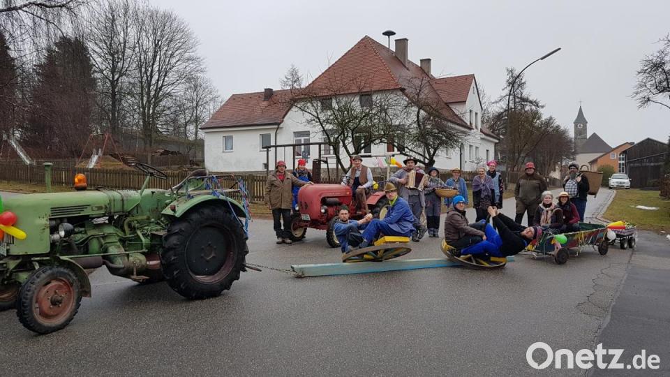 Der Faschingsverein Etzgersrieth ließ am Samstag eine alte Dorftradition aufleben: Die Mitglieder trafen sich am Schulhaus zum „Fosnacht as'ackern“ (Fasching ausackern). Dabei hatten sie am Oldtimer-Traktor einen alten Holzpflug angespannt und sich auch wie zu Großmutters und Großvaters Zeiten angezogen. Hinter dem Pflüger wurden Sägespäne gestreut, was die Aussaat von Getreide in die Ackerfurche symbolisieren soll. Damit die Narrensaat gut aufgeht, wurde sie breit ausgestreut und mit den Holzrechen eingearbeitet. Für die musikalische Begleitung sorgte Vereinspräsident Felix Ach auf seiner „Quetschn“ mit Faschingsliedern. Die Truppe zog mit "Helau"-Rufen durch das Dorf. Die meiste Arbeit hatte dabei Michael Steinhilber, der am Pflug stand. Auf dem Weg durch Etzgersrieth hatten einige Anwohner Haltestationen mit frischen Kücheln und „flüssiger Nahrung“ eingerichtet.