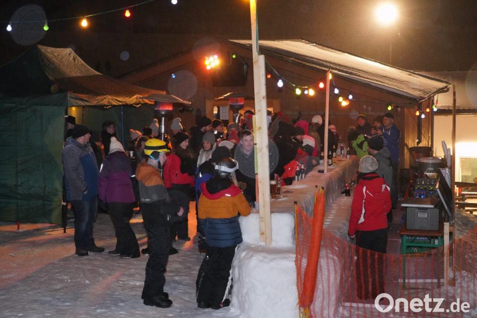 Skifahrerhelme, Anoraks und Skistiefel war die Partykleidung an der großen Schneebar, die einen Durchmesser von einem Meter hatte, 1,10 Meter hoch und neun Meter lang war. In der Hütte spielten die Waldthurner Hulzstousboum – aber auch im Partyzelt und im Freien hallten die Après Ski – Hits in die bezaubernden Fahrenberger Wälder. Viele Partygäste, wie der Waldthurner Bürgermeister Josef Beimler waren, obwohl sie sich nicht sportlich am Skihang betätigt hatten, gekommen und genossen die klasse Stimmung bei der Sause und Unterhaltung direkt an der langen Schneebar. Passend dazu setzte am Abend leichter Schneefall ein.