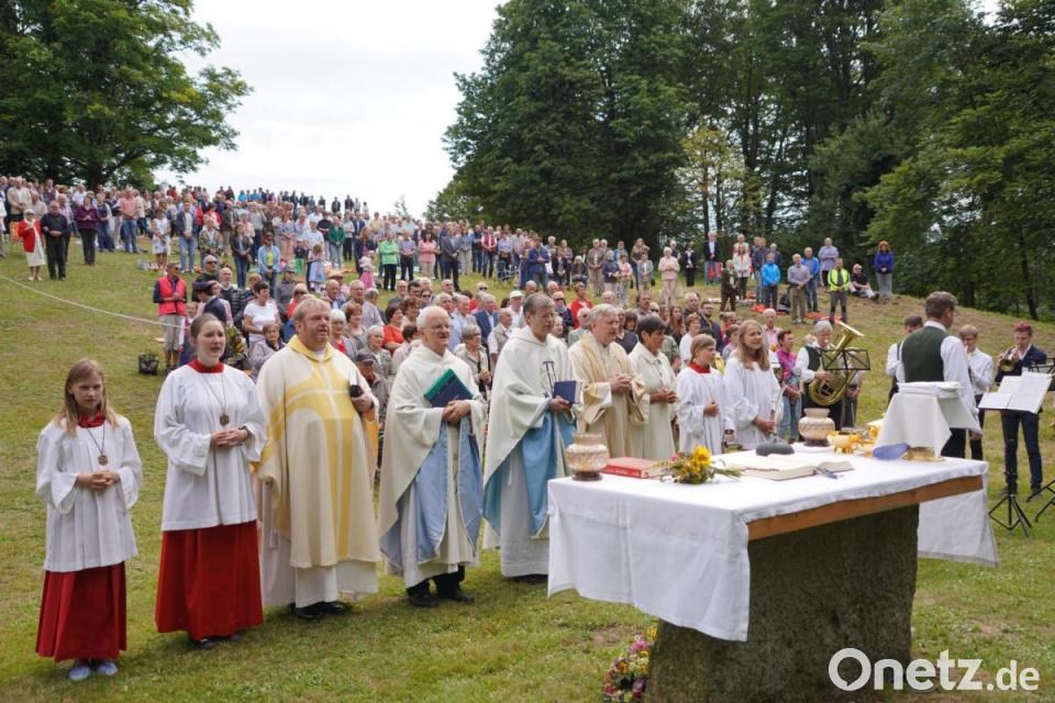 Das Wetter war geradezu ideal, so kamen zur Festmesse am Freialtar zu Fuß oder mit dem Auto auf knapp über 800 Meter Meereshöhe viele Wallfahrer. Schon die Frühmesse in der Wallfahrtkirche Mariä Heimsuchung war überfüllt – die Waldthurner Gruppe Triangel mit Marina Daubenmerkl und Georg Schmidbauer an der Orgel, umrahmte würdig die Messe. Die Feuerwehr Bernrieth zeigte unter dem Kommandanten Thomas Feneis auch an diesem Festtag einmal mehr ihr Talent, viele Fahrzeuge ohne Stau, professionell und platzsicher um den Heiligen Ort zu ordnen.