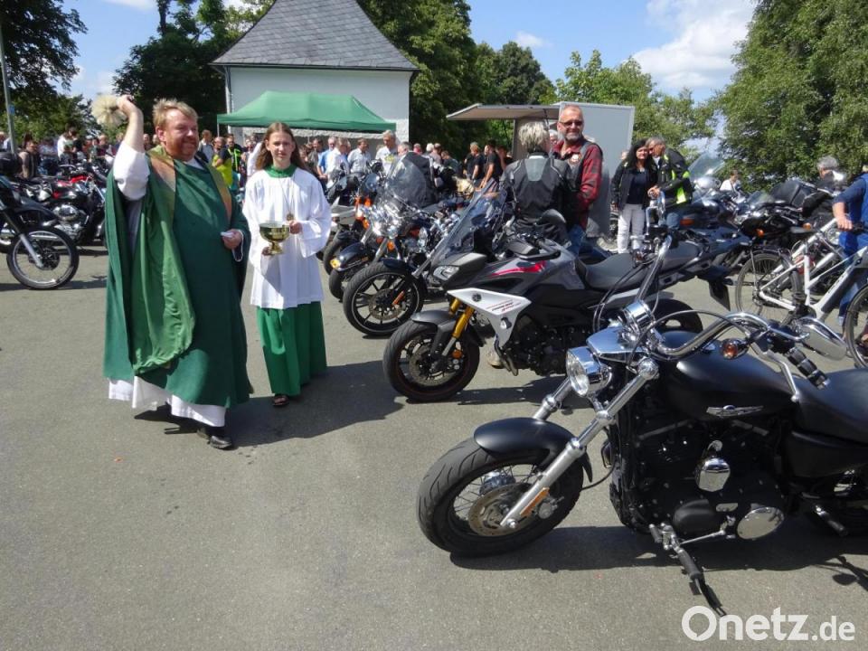 Mäx Braun und Sängerin Alexandra aus Weiherhammer umrahmten die Bikermesse musikalisch. Nach der Messe am Freialtar segnete der Seelsorger die Motorräder.