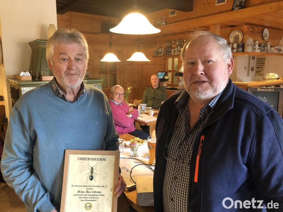 Laut Vorsitzendem Michael Weiß sind voriges Jahr 7 Nester umgesiedelt worden. Zum Jahresprogramm gehörten auch Begehungen im Ferienprogramm der Stadt Mitterteich. 2023 geplant seien Begehungen bei Großensees und am Hirschentanz. Zeitnah umsiedeln werde man ein Ameisennest zwischen Kemnath und Pressath. Einbinden werde sich der Verein unter anderem wieder beim Ferienprogramm. Erfolgreich warb man bei der Unteren Naturschutzbehörde um eine Aufwandsentschädigung in Höhe von 80 Euro pro umgesiedelten Ameisenstaat. Weiterer Höhepunkt, bevor Josef Ernst (Münchenreuth) über die Wespen und Hornissen referierte, war die Ernennung von Max Eckstein (Plößberg) zum neuen Ehrenmitglied.