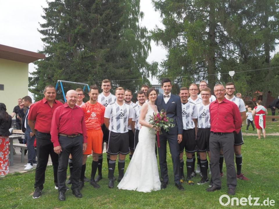 Die Trauung in der Premenreuther Pfarrkirche „Mariahilf“ wurde von Pfarrer James feierlich gestaltet und vom Falkenberger Kolpingchor musikalisch umrahmt. Der DJK-Vorstand und die erste Mannschaft gratulierten dem Brautpaar herzlich. Die weltliche Feier fand beim „Kramer-Zoigl“ in Falkenberg statt. Wohnen wird das Paar in Falkenberg.
