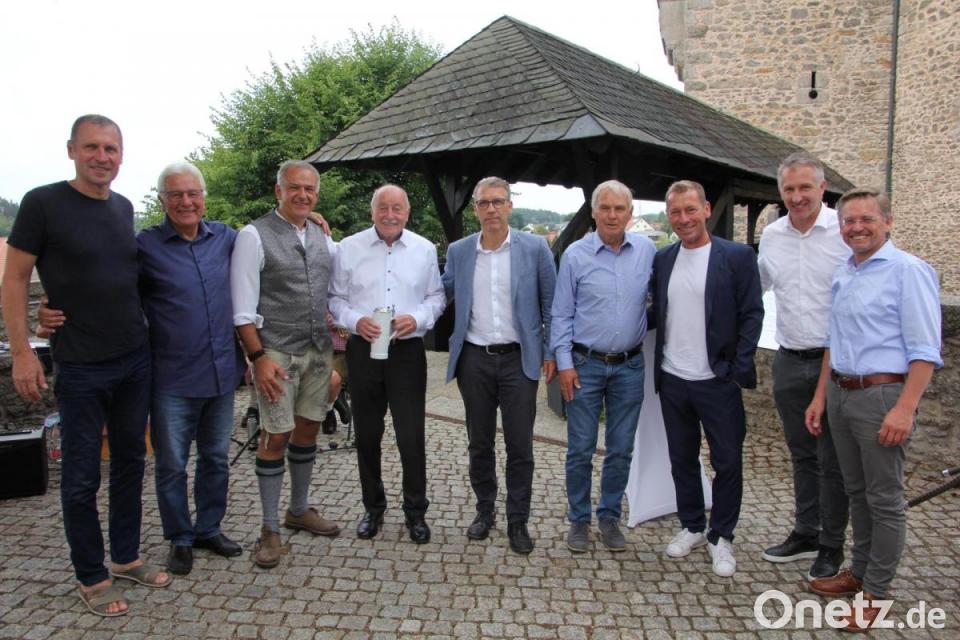 Auch der Tirschenreuther Landrat Roland Grillmeier und MdL Tobias Reiß aus Brand waren unter den illustren Gästen. Der ehemalige Bürgermeister und Forum-Falkenberg-Vorsitzende Herbert Bauer führte interessierte Gäste durch die Burg Falkenberg. Musikalisch umrahmten den Nachmittag die "Heusterz-Musikanten".