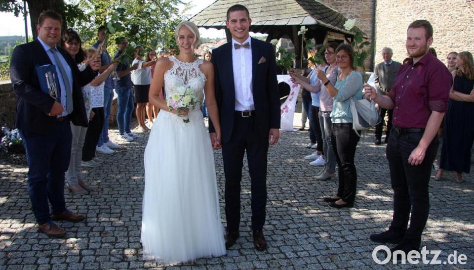 Die 31-jährige Franziska Sommer und ihr gleichaltriger Bräutigam Thomas Faltenbacher tauschten die Ringe vor dem Standesbeamten Thomas Weiß. Die aus Mitterteich stammende Verwaltungsfachkraft Sommer ist im Rathaus ihrer Heimatstadt für Bürgeranliegen, Sozialwesen, Fundsachen und Fragen zur Rente zuständig. Thomas Faltenbacher stammt aus Pleußen und arbeitet als IT-Fachmann für das Hamburger Unternehmen Leogistics. „Kennengelernt haben sie sich bei einem Starkbierfest in Mitterteich“, verriet die Brautmutter auf Anfrage. Als Wohnort haben sich Franziska, Thomas und Töchterchen Leni den Mitterteicher Ortsteil Pleußen ausgesucht. Ziel nach der Gratulationscour im Burghof war das Jugendheim in Leonberg, wo gemeinsam Hochzeit gefeiert wurde.