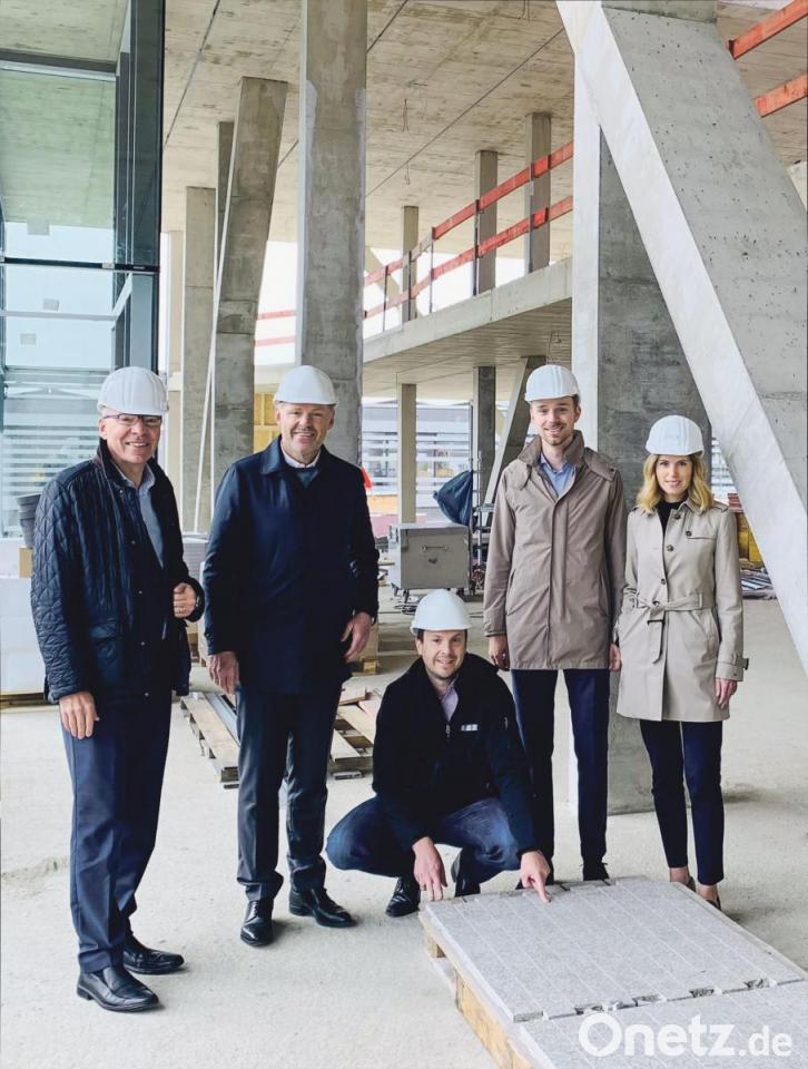 Gut 600 Tonnen Stahl und über 5000 Kubikmeter Beton wurden bereits verbaut, um die anspruchsvollen Pläne für das neue Verwaltungs- und Projektgebäude des IT-Unternehmens IGZ am Falkenberger Ortsrand Wirklichkeit werden zu lassen. Schon bei der Bauvoranfrage im Jahr 2018 wurde deutlich, dass mit dem vor rund eineinhalb Jahren geplanten 120 mal 18 Meter großen und rund 15 Meter hohen, vierstöckigen Neubau bis zu 250 zusätzliche Arbeitsplätze geschaffen werden; der offizielle Spatenstich erfolgte dann noch im November vorigen Jahres. Mindestens einmal die Woche schauen die Firmeninhaber Wolfgang Gropengießer und Johann Zrenner - immer häufiger begleitet von der bereits in Einarbeitung befindlichen zweiten Generation, Katharina Zrenner und Philipp Gropengießer - auf ihrer Baustelle auf dem nördlichen IGZ-Gelände vorbei.