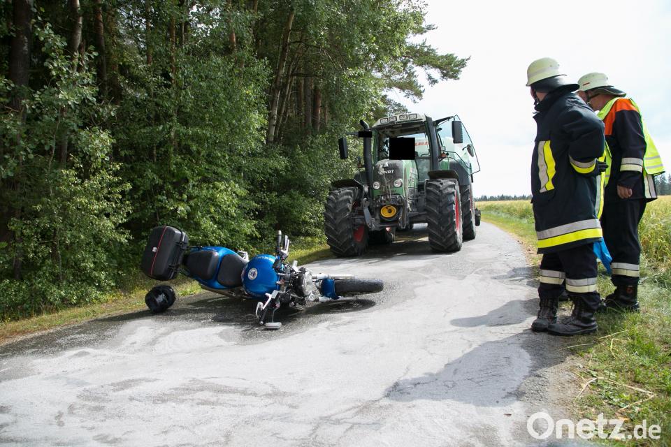 Der 47-jährige Fahrer des Traktors erlitt einen Schock. Am Motorrad entstand ein Sachschaden von ca. 2500 Euro. Den Sachschaden am Traktor beziffert die Polizei mit ca. 800 Euro.