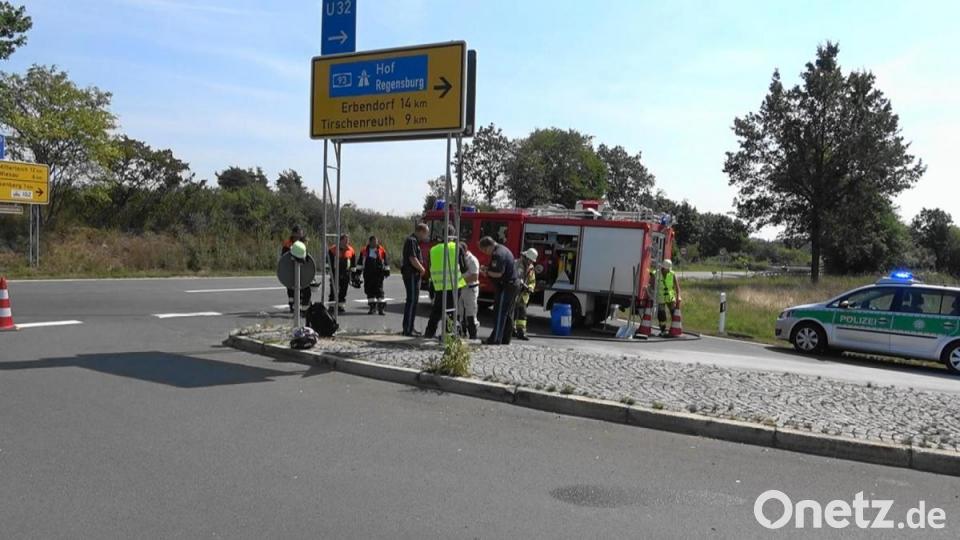 Jeweils mit ihren Motorrädern waren ein 45-jähriger Vater und sein 19-jähriger Sohn aus Sinzheim in Baden-Würrtemberg am Sonntagmittag von Wiesau Richtung Falkenberg auf der St 2170 unterwegs. Der Vater fuhr voraus und bremste stark ab, weil er die Abzweigung nach Falkenberg verpasste. Dies bemerkte der nachfahrende Sohn zu spät und fuhr mit seinem Motorrad auf das Fahrzeug seines Vaters auf. Es kam zum Sturz beider Männer. Wie die Polizei auf Nachfrage von Oberpfalz-Medien mitteilt, wurden die Motorradfahrer an der Unfallstelle von herbeigerufenen Sanitätern untersucht. Sowohl der 45-Jährige, als auch der 19-Jährige blieben unverletzt. An den Fahrzeugen entstand insgesamt ein Schaden von 2000 Euro. Die Feuerwehr Falkenberg war zur Reinigung der Fahrbahn und der Verkehrsregelung vor Ort.