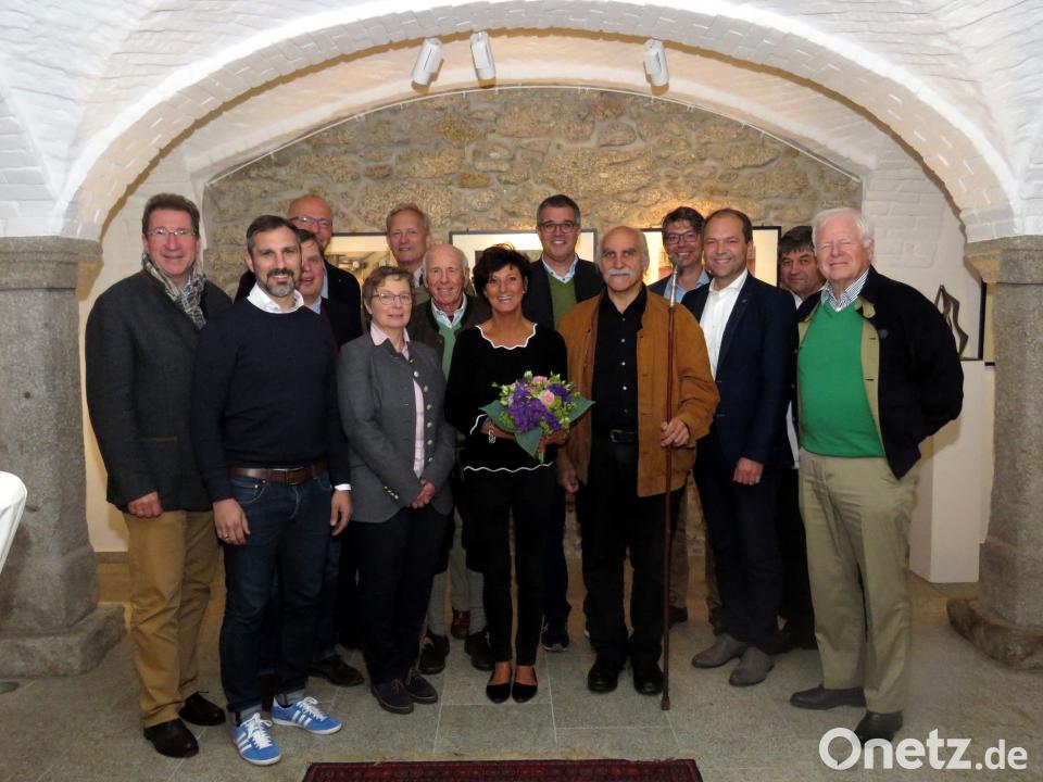 Das neue Vorstandsteam des Rotary-Clubs Stiftland: Vorne von links Alfred Lauterbach, Thomas Franz, Dr. Elvira Leonhardt-Heinrich, Uschi Huber, Jeff Beer, Hans-Jörg Schön, Dr. Wolfgang Ries. Hinten von links Richard Pappenberger, Wolfgang Gropengießer, Dr. Bertold von Lindenfels, Klaus Kupke, Christian Schönberger, Peter Andritzky, Hubert Rustler.