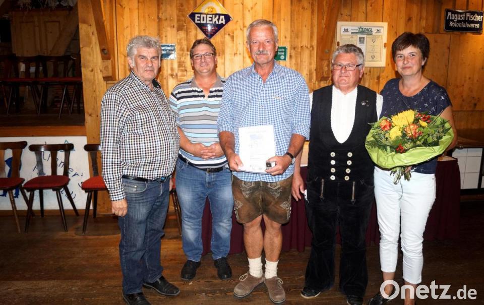 Anlässlich seines 60. Geburtstages ehrte die Wiesauer Holzbau Schuller Bedachungen GmbH ihren Mitarbeiter Johann Schüner. Verbunden war der Geburtstag zugleich auch mit einem Jubiläum, der 45-jährigen Betriebszugehörigkeit. Schüner begann am 1. August 1974 eine Lehre als Zimmerer. Für seine mehr als vier Jahrzehnte lange Verbundenheit zum Unternehmen der Familie Schuller wurde der in Falkenberg beheimatete Doppel-Jubilar im Rahmen einer kleinen Feier beim „Kramer“ in Falkenberg von Kreishandwerksmeister a. D. Karl Arnold im Namen der Kreishandwerkerschaft Nordoberpfalz mit der goldenen Anstecknadel ausgezeichnet.