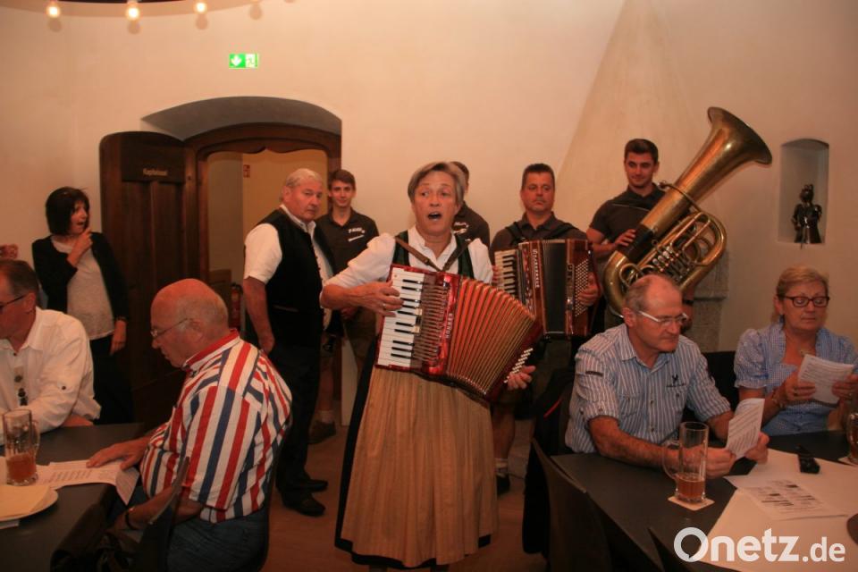 Auch für Nur-Zuhörer war einiges geboten: Das beliebte "Neualbenreuther Zwio" war in der Burg, um ein paar Kostproben seiner feinsinnigen und unterhaltsamen Lieder zum Besten zu geben. Miteinander wurden zwischendurch bekannte Lieder gesungen. Hedwig Bauer spielte mit dem kleinen Akkordeon auf. Es war halt alles so, wie es Brauch ist bei der Kirwa in Falkenberg. Für das leibliche Wohl war mit Kirwakouchn, Zoigl und Brotzeiten natürlich auch gesorgt.