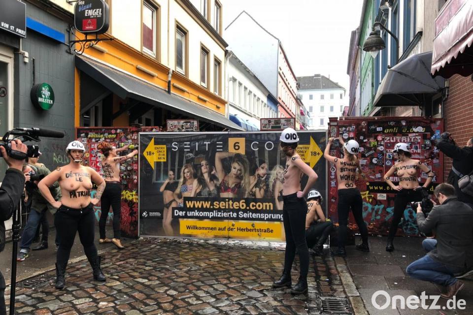 In der Herbertstraße in St. Pauli in der Nähe der Reeperbahn sitzen Prostituierte leicht bekleidet in ihren Fenstern und sprechen vorbeilaufende Männer an. Die Aktivistinnen kritisierten, dass die öffentliche Straße seit Jahrzehnten für Frauen unzugänglich ist. Einige der Frauen hatten sich mit schwarzer Farbe und auf Englisch „Keine Mauern zwischen Frauen“ auf den Rücken schreiben lassen. Laut Polizei soll gegen die Frauen nun Strafanzeige wegen Sachbeschädigung gestellt werden.