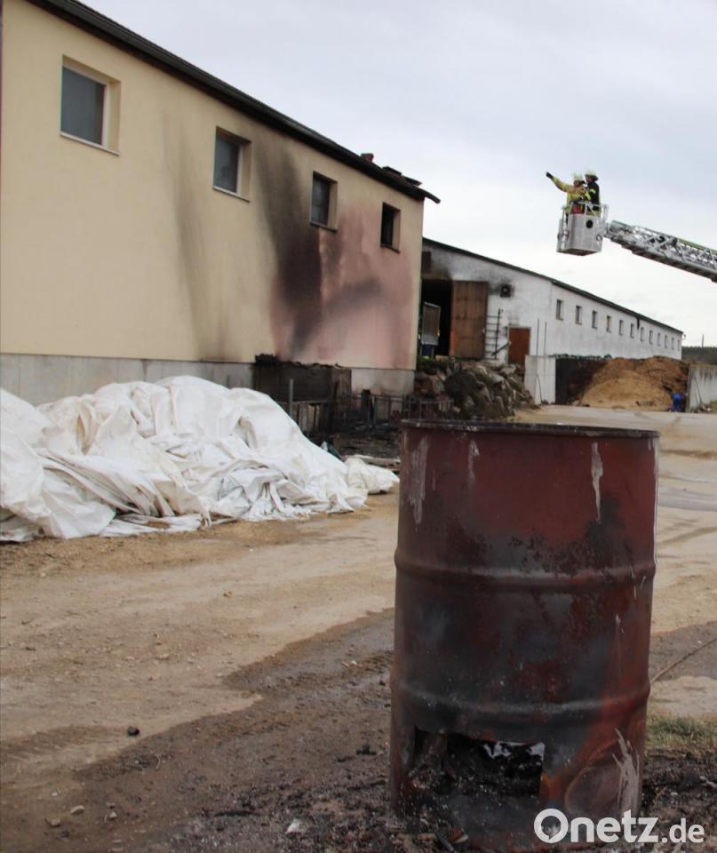 Es flogen Funken, quer über den Platz neben dem Stall. Sie entzündeten einige Siloabdeckungen, die in einem Metallkasten neben der Fassade des langgestreckten Gebäudes abgelegt waren. So begann es zu brennen, wobei die Flammen die Wände verrusten, ein Fenster sprengten und die Dachbedeckung an einer Stelle unweit des Stalleingangs in Mitleidenschaft zogen.