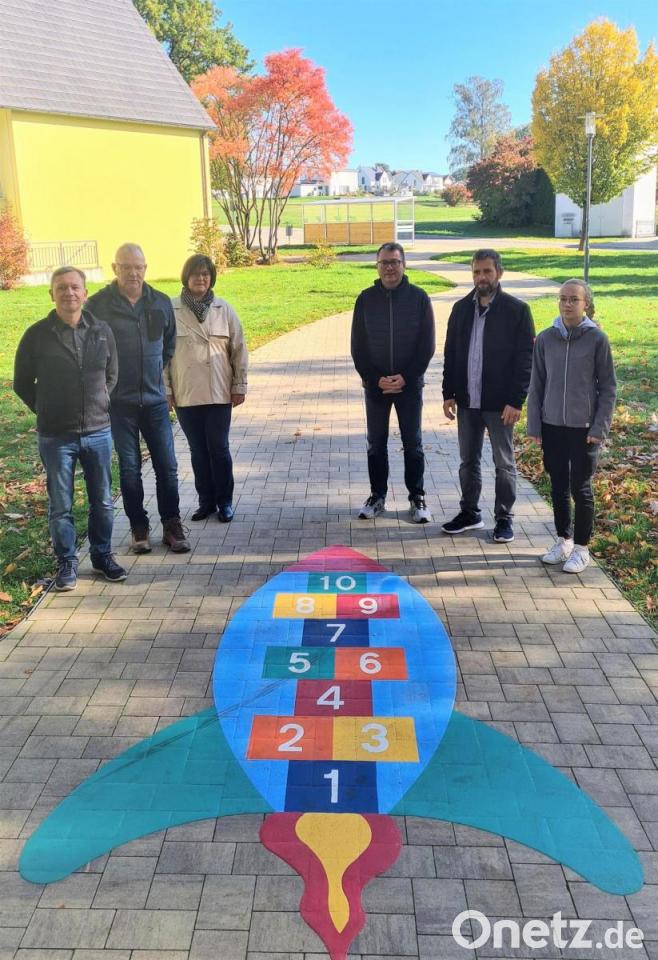 "Was machen wir mit dem Geld, welches wir am Stand beim Mittelalterlager erwirtschaftet haben?" Diese Frage haben sich die Fensterbacher Imker gestellt. Eines war klar, es sollte etwas für Kinder sein. Schnell einigte man sich auf eine Vorlage fürs "Kastlhupfa", um dieses alte, fast vergessene Spiel wieder aufleben zu lassen. Da es dieses Spiel in Form einer Biene leider nicht gibt, wurde daraus eine Rakete. Doch bei einem Preis von knapp 600 Euro reichte das Budget des Mittelalterlagers nicht. Der Förderverein der Grundschule sprang ein und der Bauhof half bei der Umsetzung. Nun wurde die "Hüpfrakete" offiziell an Rektorin Heidi Neidl übergeben.