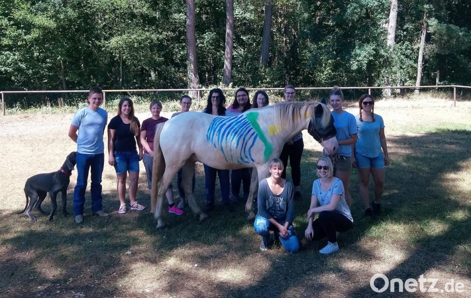 Die Teilnehmer stellten viele Fragen, die die Referentin anhand von verständlichem Anschauungsmaterial klären konnte. Danach ging es dann an den Praxisteil, für den die Organisatorin ihr Pferd "Downey" zur Verfügung stellte. Es wurde nun am lebenden Objekt erklärt, wie Osteopathie funktioniert und zur Selbstanwendung genutzt werden kann. Höhepunkt der Veranstaltung war das Bemalen des Pferdes mit Fingermalfarben, um den Knochenbau des Pferdes zu verdeutlichen. Organisiert wurde die Veranstaltung von Romy Schneider, die sich über das große Interesse sehr freute.