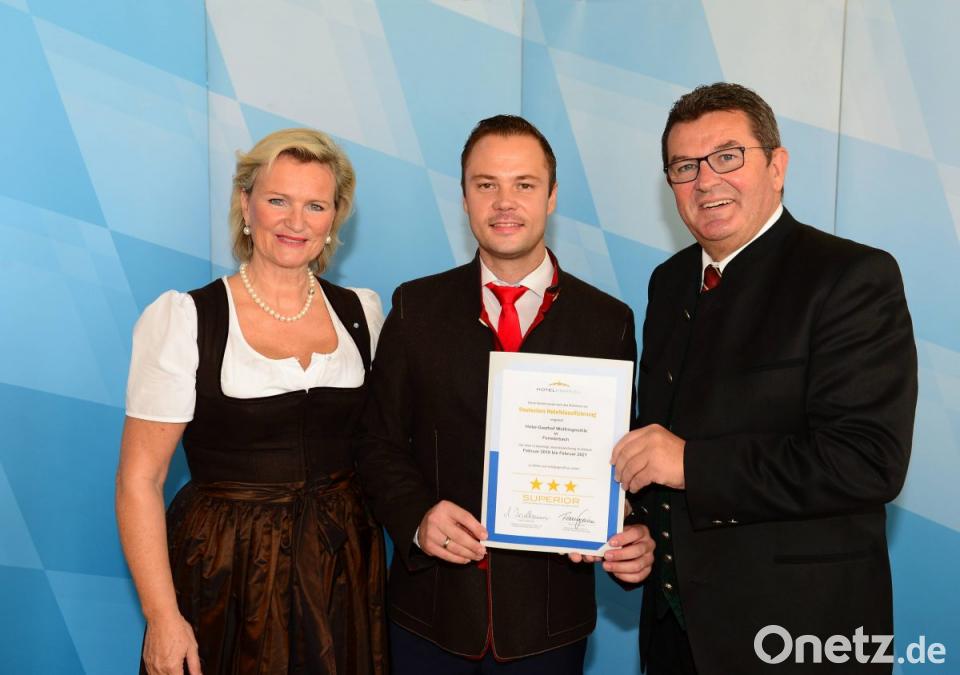 Bayerns Wirtschafts- und Tourismusminister Franz Josef Pschierer und die Präsidentin des Bayerischen Hotel- und Gaststättenverbandes Bayern, Angela Inselkammer, haben kürzlich in München Sterne an 75 Hotels, Gasthäuser und Pensionen vergeben.Thomas Auerbach vom Hotel Wolfringmühle durfte sich über die Einstufung seines Hauses mit "3 Sterne Superior" freuen. Gastronomie und Hotellerie seien Aushängeschild und Visitenkarte Bayerns, sagte Pschierer bei der Verleihung. Inselkammer betonte, dass in- und ausländische Gäste Wert auf verlässliche Klassifizierungen legen. Das Instrument trage dazu bei, dass Qualität sichtbar werde, ergänzte Pschierer.