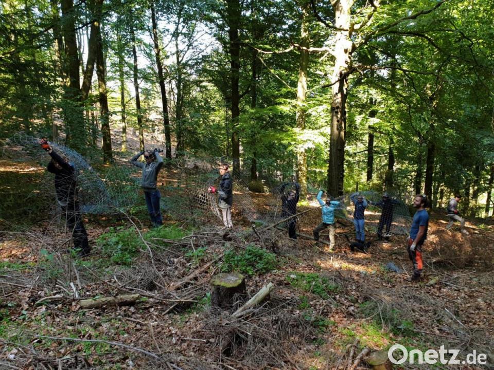 Im weiteren Verlauf der Woche legten die Freiwilligen einen kleinen Wandersteig entlang der "Wolga", eines Bachlaufs bei Föllmar, frei. Auch "typische" Forstarbeiten, wie der Abbau eines entbehrlichen Kulturzaunes oder der Schutz kleiner Douglasienpflanzen vor dem Wild, standen auf dem Plan. Als kleines Dankeschön des Forstbetriebs erwartete die Jugendlichen am Freitag eine Abschlussexkursion in den Wildpark Waldhaus Mehlmeisel.