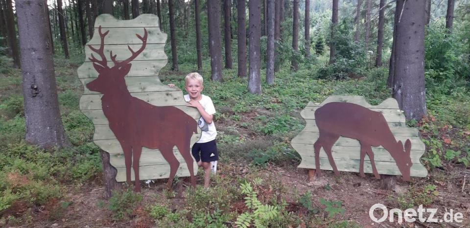 Kinder spitzten schon ungeduldig aus den Fenstern des Eingang-Pavillons und die Sonne hinter den Bäumen hervor, als Winfried Pfahler, Betriebsleiter des Forstbetriebs Fichtelberg der Bayerischen Staatsforsten, Zweiter Bürgermeister und Förster Bernhard Kraus sowie Bürgermeister Sebastian Voit die Tafel anschraubten und damit den Weg eröffneten und ihm seinen offiziellen Namen gaben.