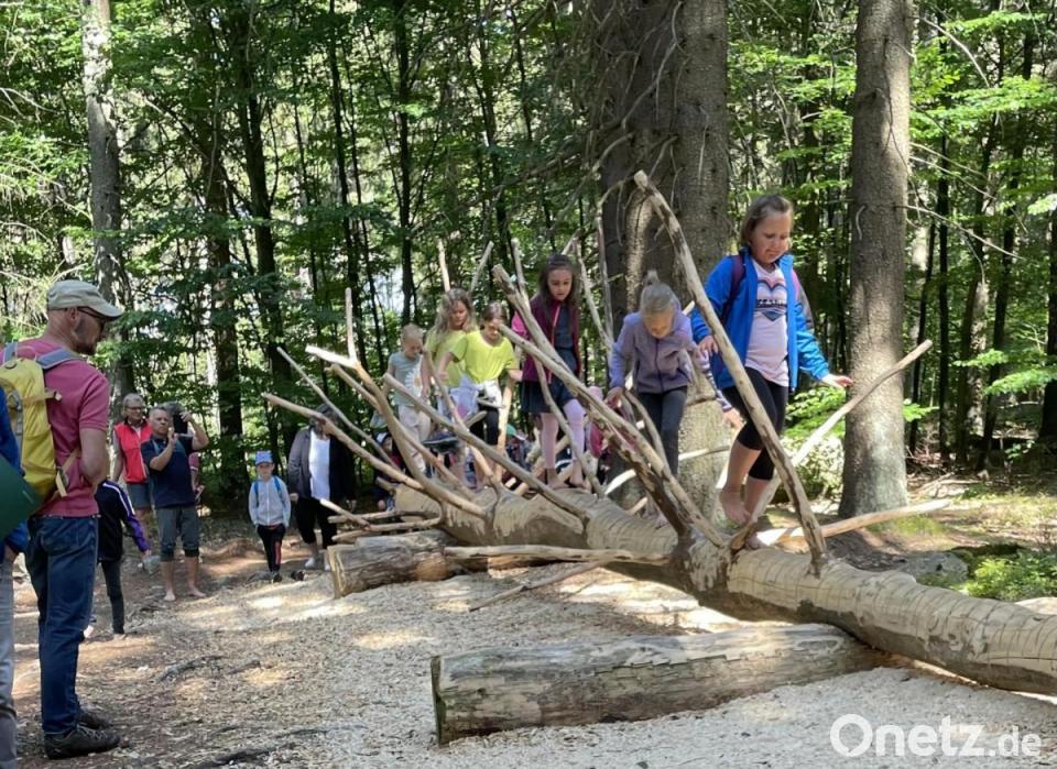 Im Mittelpunkt der kleinen bunten, „barfüßigen“ Feier standen die Gemeinschaftsleistung, Basis für dieses Projekt, das nach längerer Vorgeschichte in nur einem Jahr fertiggestellt wurde, und der Dank an alle Beteiligten – besonders aber an Bernhard Kraus. „Er gab alles, um das festgesetzte Ziel zu erreichen, hat geplant und gemeinsam mit den Auszubildenden des Forstbetriebs und Helfern gestaltet und gebaut“, zollte ihm Pfahler Anerkennung, überzeugt, dass „dank der optimalen Zusammenarbeit ein Projekt entstanden ist, das eine Strahlkraft weiter über das Fichtelgebirge hinaus hat“.