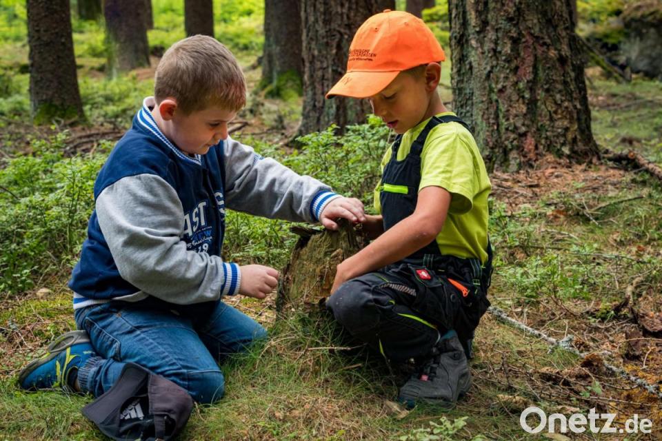 Dann ist aber genug geredet, jetzt wollen Lukas Nickl und seine Mitschüler das neue Klassenzimmer und sein Umfeld erkunden. Sie schwärmen aus, spielen Waldmemory, erkunden die Tierwelt des Waldes und erstellen Baumsteckbriefe - alles spielerisch und trotzdem lehrreich. Lukas darf sich dabei in einen Borkenkäfer verwandeln und die Lebensgemeinschaften im Wald kennenlernen. Angeleitet werden die Kinder von den Förstern des Forstbetriebs Fichtelberg und Ruth Mattheas, Sachbearbeiterin für Waldpädagogik des Amtes für Ernährung, Landwirtschaft und Forsten (AELF) Bayreuth.
