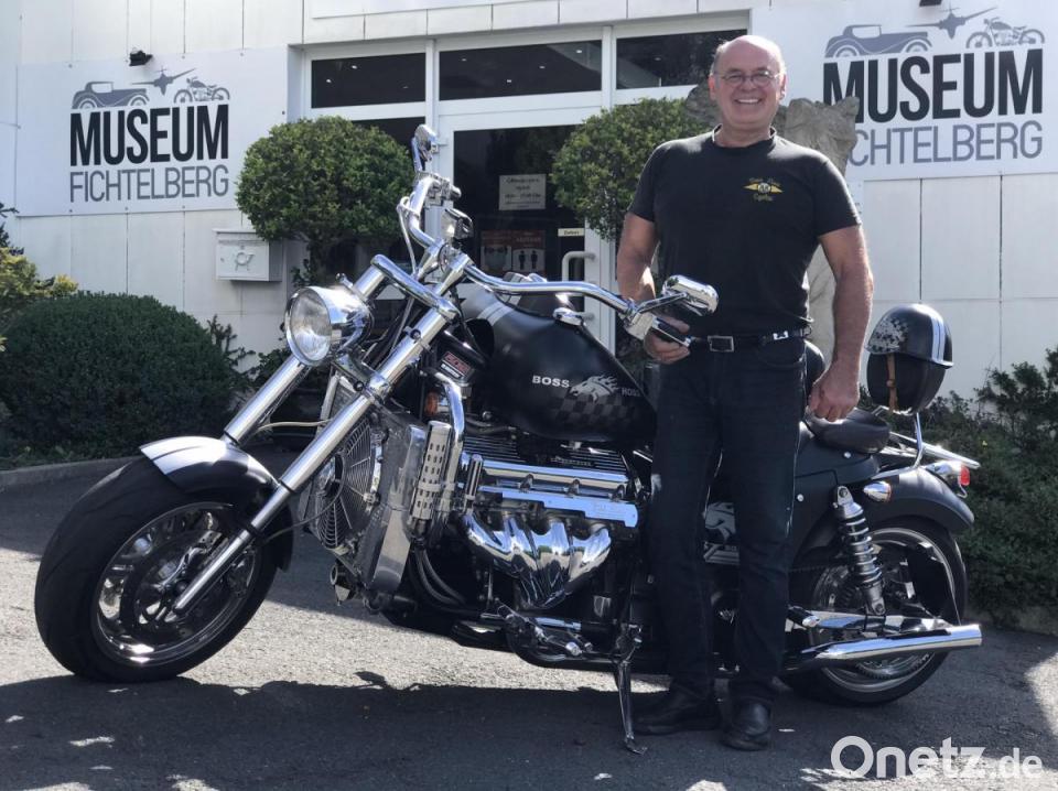 „Es ist ein erhebendes Gefühl, diese Boss Hoss zu fahren. Mit Vernunft hat das wohl wenig zu tun“, sagt Perry Eckert, Inhaber des Fichtelberger Automuseums - eher schon mit seiner Vorliebe für Motorräder: fast von Kindesbeinen an. „Schon mit 15 Jahren bin ich verbotenerweise mit einem selbst renovierten Motorrad unterwegs gewesen“, gesteht er.