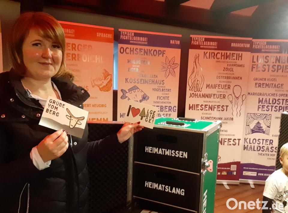 Ein Mädchen nimmt sich ein "Brauchtumshäppchen" als Lesezeichen vom Baum, der bereits so leer ist, dass Ausstellungmacherin Yvonne Siller nachfüllen muss. Gleich daneben darf sich jeder mit "Heimatliebe" in Postkartengröße eindecken. "Erinnerungen" schreibt ein junger Mann auf ein Kärtchen, piekst es an die Wand und verbindet damit das Fichtelgebirge. Der kleine Noah ist stolz auf seine "Guckern", die er gerade mit einem "Ochsenkopf", Hufeisen, Bäumen und einem roten Herz ganz alleine gestaltet hat.