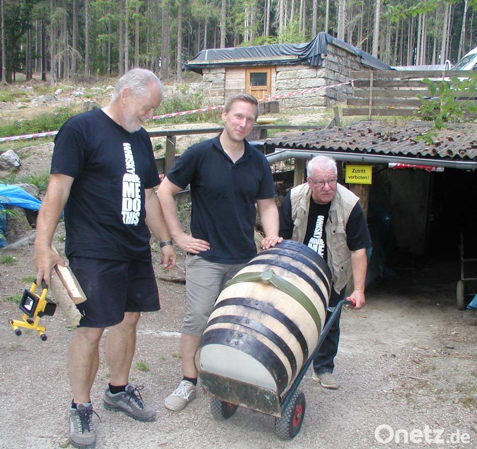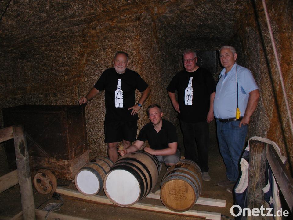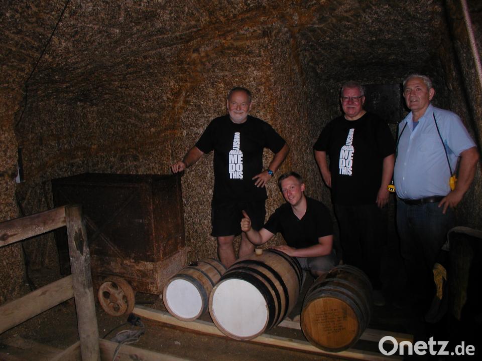 Doch der Reihe nach: Es war fast eine kleine Abenteuerreise, als Hadrian Bromma, sein Vater Bernhard und Mitstreiter Burkhard Nöth, geführt von Bergwerksbetreiber Thomas Obermüller, die schweren Holzfässer, die bereits mindestens zehn Jahre in Schottland lagerten, nacheinander durch uralte handgeschlagene Stollen hindurch in den „Bauch“ des Ochsenkopfs rollten und sie neben einem alten Förderwagen (Hunt) über gruseligen Tiefen platzierten.
