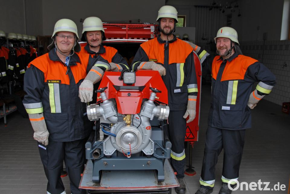 Der Kauf einer neuen Pumpe war notwendig geworden, da die alte Tragkraftspritze TS8 nicht mehr zuverlässig arbeitete und damit die Einsatzfähigkeit der Wehr gefährdet war. Von dem neuen Löschgerät, gebaut vom österreichischen Feuerwehrspezialisten Rosenbauer ist die Mannschaft begeistert. Es gibt kein kräftezehrendes Starten mit der Handkurbel mehr, denn die moderne Spritze mit der Typenbezeichnung FOX S hat ein automatisches Bedienfeld. Sie startet auf Knopfdruck und sie braucht auch nicht, dank der Ansaugautomatik, vor dem Starten mit Wasser gefüllt werden.