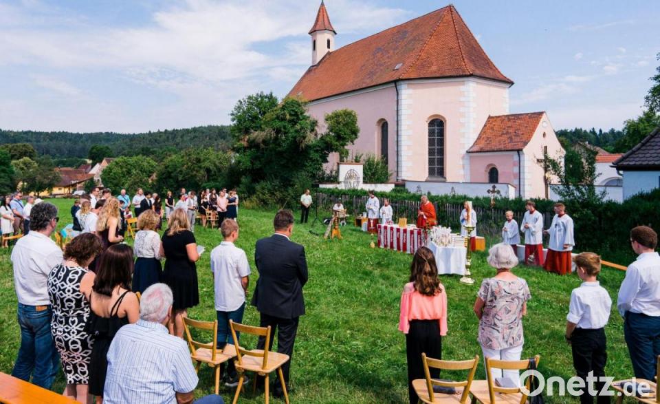 Statt von einer Kirchenbank aus blickten 15 junge Leute auf Bierbänken ihrer Firmung entgegen. Ein Jahr lang hatten sie sich - zuallermeist in digitalen Katechesen von Gemeindereferentin Stefanie Seufert-Wolf - auf den Tag vorbereitet, der ursprünglich im Mai kommen sollte und dann nochmals um einige Monate in den Sommer hinein verschoben wurde. Auf der Pfarrwiese hinter der Wallfahrtskirche Mariä Himmelfahrt legte ihnen Pfarrer Roland Klein bei herrlichem Sonnenschein die Hände auf und salbte sie mit einem Kreuz aus Chrisam. Der Bischof hatte den Ortsgeistlichen beauftragt, mit der Firmspendung die Taufe zu vollenden und deren Empfänger vollständig in die Kirche als Gemeinschaft der Gläubigen aufzunehmen. Den Gottesdienst bereicherten Hans Braun an der „Außenorgel“ und Bernhard Wolf mit dem Gospelchor.