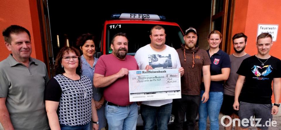 Nutznießer ist der Förderverein Freiwillige Feuerwehr Floß. Spielleiter Braun kam mit Ilka Lingl, Birgit Vogel und Reinhold Göring zu den Wehrmännern und dankte ihnen für den mustergültigen und lobenswerten Einsatz und dem Dienst am Nächsten. "Sie verdienen das neue Feuerwehrgerätehaus." Und deshalb gab es dafür eine Spende von 1000 Euro, die der Vorsitzende des Fördervereins, Kommandant Felix Müller, mit Feuerwehr-Vorsitzendem Florian Witzl entgegennahm. Beide hielten fest, dass es nicht selbstverständlich sei, dass sich eine kulturelle Einrichtung wie die Theatergruppe so spendabel zeige.