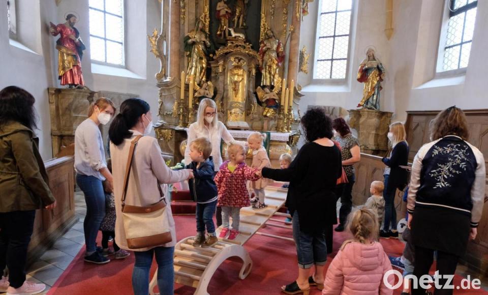 Der Wichteltreff in der evangelischen Kirchengemeinde St. Johannes Baptista feierte Geburtstag. Vor 30 Jahren wurde er auf Initiative der früheren Vorsitzenden des Frauenbundes, Karin Pausch, gegründet. Dieses kleine Jubiläum feierten die "Wichtel" mit einem Krabbelgottesdienst in der evangelischen Kirche. Die Buben und Mädchen waren mucksmäuschenstill, als die Kirchenglocken den Krabbelgottesdienst einläuteten. „ Wir danken und loben Gott für diese gemeinsame Zeit", hielt Pfarrer Windfried Römischer fest. Zweite Vorsitzende Kerstin Sommermann überbrachte stellvertretend für Christa Riedel die Glückwünsche des Frauenbundes, der vor 30 Jahren Geburtshelfer war. Als Geburtstagsgeschenk gab es ein hölzernes Klettergerüst mit Kletterbogen, das von den Kleinen gleich ausprobiert werden wollte.