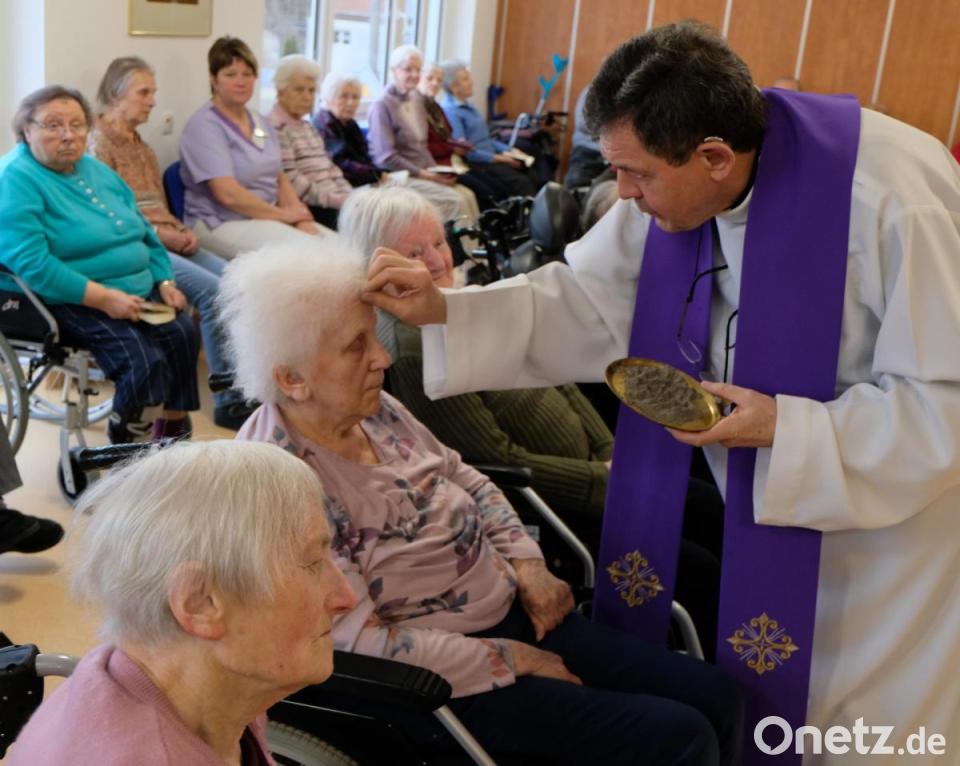 "Mit dem Staub der Erde wird uns das Zeichen des Kreuzes, das Zeichen des Menschensohnes auf die Stirn gezeichnet. Damit wird sichtbar, dass wir Menschen des Todes und Menschen der Erlösung sind." Pfarrer Max Früchtl war es ein Anliegen, am Donnerstag in der heiligen Messe im Seniorenwohnheim „Am Reiserwinkel" den Heimbewohnern und Gläubigen das Aschenkreuz auf die Stirn zu zeichnen.
