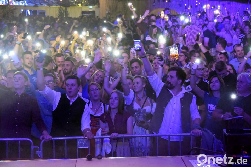 "Als Außenstehender realisiert man gar nicht, was da alles dahinter steckt. Es sind ewig viele Handgriffe nötig, bis alles so läuft, wie es läuft", sagt Stephan Bodensteiner, der dem Burschenverein erst seit einem Jahr angehört. Zum ersten Mal ist er ins Kirwa-Geschehen voll eingebunden. "Das haben unsere heutigen Ehrenmitglieder über Jahrzehnte alles aufgebaut." Ob mit einem Handy-Taschenlampenmeer zu "Angels" von Robbie Williams, in den Zelthimmel gestreckten Armen zu "Hulapalu" oder rockigen Tanzbewegungen bis hin zum Mähnenschütteln zu AC/DC - die Bands verstanden es aufs Beste, die Menge aus der Reserve zu locken und bis in die tiefe Nacht hinein zum Feiern zu motivieren.