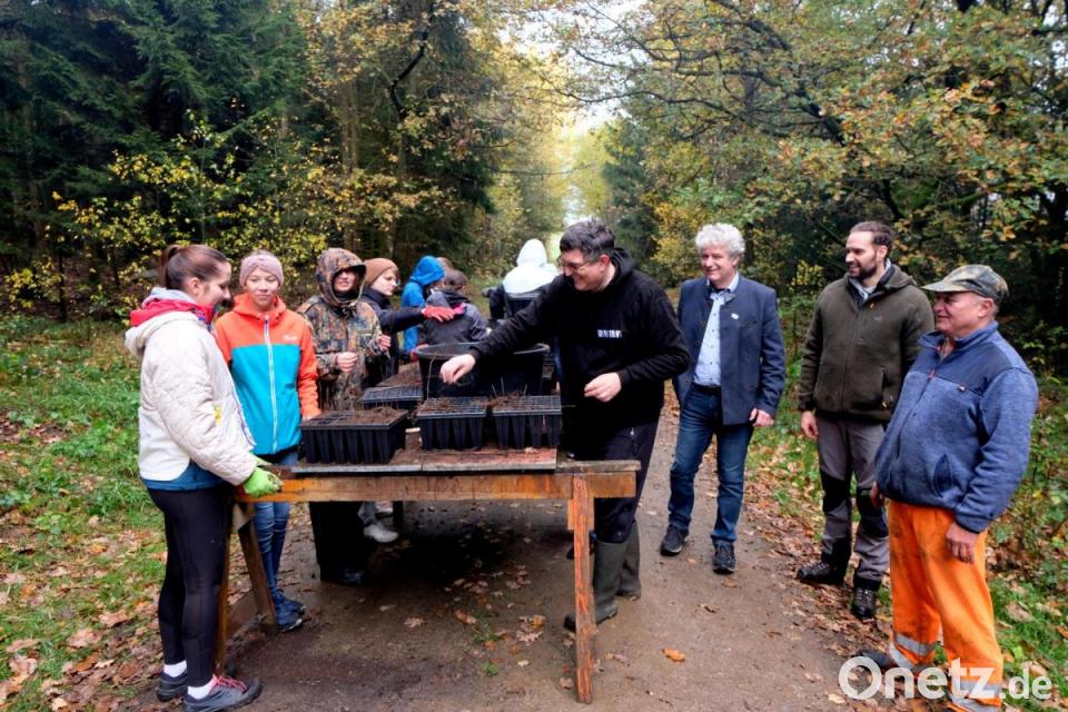 Dieses Jahr sammelten Schüler aber auch der Förster neue Erfahrungen. Anstatt Bäume zu pflanzen, wurden dieses Jahr Wildlinge des Bergahorns geerntet. Ein Wildling ist ein wenige Jahre alter Baum, der in der Nähe seiner Elternpflanzen keimt. Da nur Jungpflanzen besonders geeigneter Bäume geerntet werden und diese auch noch an die Bedingungen in unseren heimischen Wäldern angepasst sind, entstehen so Setzlinge von besonders guter Qualität.