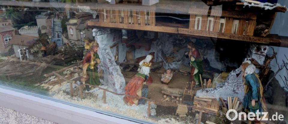 Angeboten hatten sich die Flosser Familien Hans Grünwald mit Tochter Angela und Sohn Klaus sowie Markus Scharnagl, ihre Krippen für die Ausstellung zur Verfügung zu stellen. Schon seit Beginn der Adventszeit ist das große Schaufenster mit Krippenfiguren aller Art, der Stall zu Bethlehem mit dem Jesuskind, Maria und Josef, Engeln und Hirten sowie allerlei Getier, geschmückt. Ein Blickfang, der jedem Straßenpassanten ins Auge fällt und Bewunderung hervorruft.
