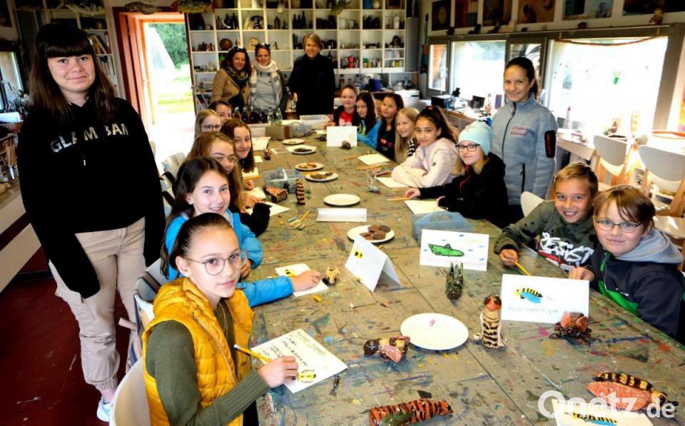 Insekten lieben naturnahe Lebensräume, und auch ihre keramischen Ebenbilder fühlten sich auf dem Holz- und Wiesengrund, auf dem sie anschließend präsentiert wurden, sichtbar wohl. Bei der Arbeit mit dem Werkstoff Ton kam es sowohl auf die handwerkliche Umsetzung als auch auf eine zum ausgewählten Insekt passende Form- und Farbgebung an. Die Natur studieren und sie in ihrer Vielfalt wahrnehmen, das inspirierte schon den Renaissance Künstler Albrecht Dürer, dessen Wiesenstück als Naturstudie weltberühmt wurde. Für die Kunstklasse 6/7 gibt es zum Thema „ Papierschöpfen" im Winterhalbjahr vielleicht schon ein baldiges Wiedersehen im Kunstraum. Derartige Kooperationen sind ein echter Gewinn für beide Seiten und bereichern den Schulalltag.