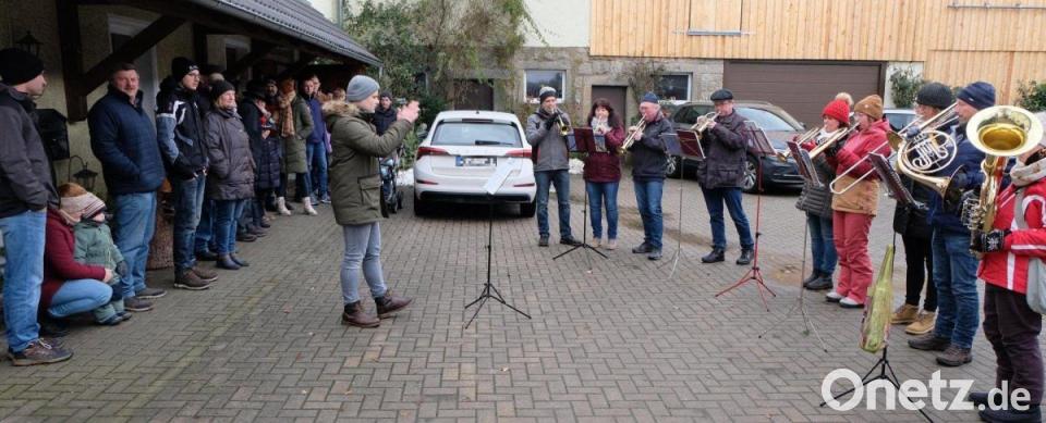 In diesem Jahr hatten sich Leiterin Tanja Riedel und Obmann Richard Riedel entschieden, am zweiten Adventssonntag die Ortsteile Kühbach, Haupertsreuth, Haupertsreuth-Siedlung, Hardt, Schönbrunn und Würzelbrunn zu betreuen. In jedem Aufführungsort erklang es: „Wir sagen euch an, den lieben Advent.“ Weil Tanja Riedel beruflich verhindert war, nahmen ihre Stellvertreter Jonathan Bär und David Meierhöfer den Taktstock in die Hand. Der frühere Leiter Wolfgang Lang war als aktiver Bläser mit dabei. Und das Erfreuliche bei diesem kleinen Dorftreffen: Die Dorfbewohner ließen es sich nicht nehmen mit dabei zu sein und hatten Freude an den musikalischen Darbietungen. Nach getaner Arbeit hatten sich die Bläserinnen und Bläser zur Einkehr im Bär’n Stüberl in Würzelbrunn getroffen.