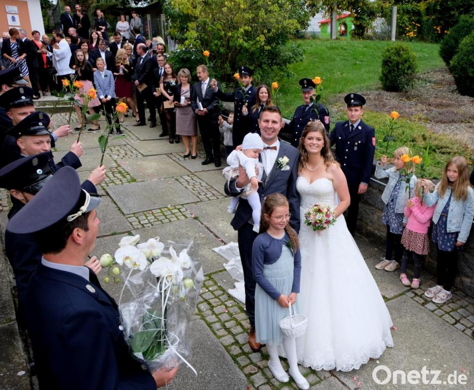 Öffentlichkeitsarbeit ist für den Bräutigam kein Fremdwort. Er stellt sich den Herausforderungen als Mitglied der Feuerwehr Großensterz, die in Floß nach der kirchlichen Trauung Spalier stand. Vorsitzender Matthias Burger überbrachte Glückwünsche und Präsent. Sabrina Meierhöfer war lange Zeit ein aktives Mitglied beim Flosser Turnverein 1908 und gehörte zum Stamm der Aerobic-Gruppe. Leiterin Birgit Götz kam mit einer Abordnung der Gruppe und roten Luftballons, um die Glück- und Segenswünsche für den neuen Lebensweg zu überbringen. Zur Feier ging es in den Gasthof "Zur Post" in Bärnau.