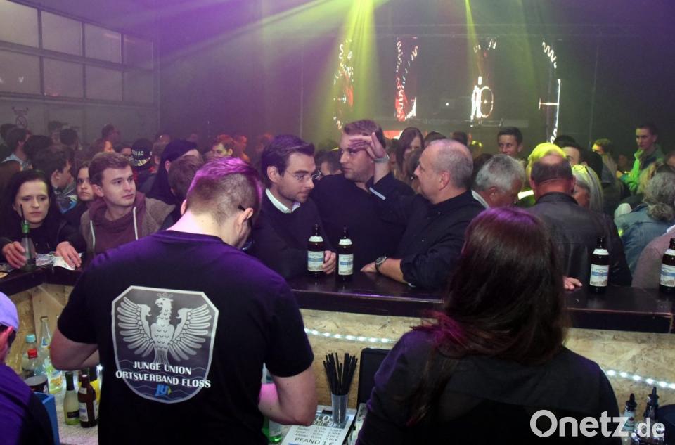 „Wir hatten lange nach einer Location gesucht“, erinnerte sich die Ortsvorsitzende. Schließlich war der Burschenverein bereit seine neue Halle am Ortsrand zur Verfügung zu stellen – mit ausreichend Parkmöglichkeiten und keinen Anwohnern in der näheren Umgebung der perfekte Veranstaltungsort. Auch programmmäßig hatten die JU’ler einiges aufgefahren, etwa mit den beiden DJs: DJ Tasty alias Benjamin Reber und DJ Dabics alias Christoph Schenk, der als passionierter Lichttechniker auch für die außergewöhnliche Beleuchtung der Halle sorgte. „Wir haben das meiste an Technik aufgefahren - das, was es in Floß noch nie gab“, erzählte Schenk mit leuchtenden Augen. Drei Tage hatte er in den Aufbau der LED-Wände und der kopfgesteuerten Scheinwerfer investiert, die auf die Musik abgestimmt die Tanzfläche ins passende Licht rückten. Als „Special Friend“ erinnerte zwischendurch DJ Peter Mandry mit Musik von klassischen Schallplatten an frühere Zeiten. Unter die Gäste aus Floß und Umgebung mischten sich auch lokale Parteifunktionäre wie Armin Betz oder der stellvertretende JU-Landesvorsitzende und Landtagskandidat Stephan Oetzinger. „Eine super Halle, und die DJs haben’s echt drauf“, lobte Corinna aus Floß die perfekte und gutbesuchte Jubiläumsparty.