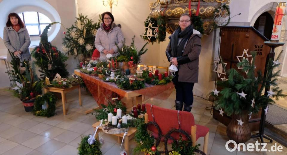 Die Tradition, dass der Adventsbasar des Evangelischen Frauenbundes am ersten Adventssonntag in der Marktplatzanlage stattfindet, musste erneut unterbrochen werden. Deswegen präsentierten die Frauen ihre Dekoangebote heuer mit Zustimmung von Pfarrer Wilfried Römischer unter der Kanzel und am Taufstein der Pfarrkirche. Nach dem Gottesdienst spielte der Posaunenchor unter Leitung von Wolfgang Lang Adventslieder zur Einstimmung auf die Vorweihnachtszeit. Derweilen inspizierten die Kirchgänger das Angebot an Adventskränzen, Plätzchen, Likören und vielem mehr.