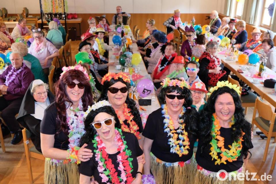 Glänzende Auftritte des Teams als Hulamädchen, darunter Elvis Presley (Brigitte Beer) und „Es gab kein Bier auf Hawaii“, heizten die Stimmung so richtig an. Auch die Jubilare und Jubilarinnen im Januar und Februar wurden nicht vergessen. Sie bekamen handgefertigte Geschenke. Sophie Dollhopf war mit 95 Jahren die älteste Teilnehmerin an diesem Nachmittag. Vorträge Gedichte, Gesangseinlagen, Sketche und der Gesangsvortrag „Die fünf Witwen" rundeten einen fröhlichen und heiteren Nachmittag ab. Selbst eine Maskenprämierung, wo sich Christina Kreuzer als Nonne den ersten Preis holte, gab es.