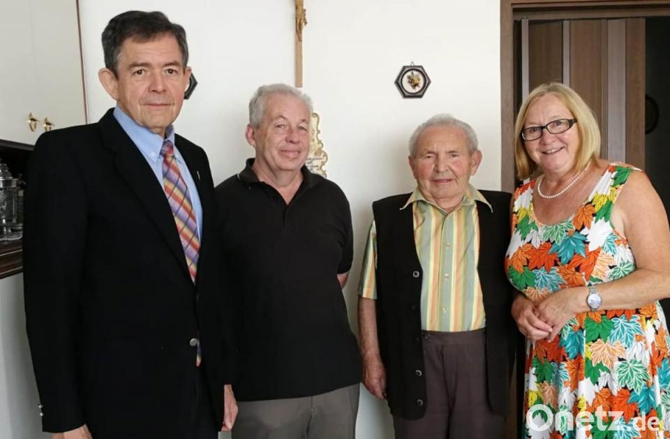 Wenn von einem waschechten Flosser die Rede ist, dann reiht sich der frühere Glasschleifer Karl Neuber ganz vorn mit ein. Ein Urgestein beim Flosser Sportverein, den er als Schüler bis zur Altliga – und das noch mit 85 Jahren – kräftig unterstützt. Der Fußball hat es ihm angetan, er ist sein Leben. Kaum ein Spiel der ersten Mannschaft des SV versäumt Neuber. Hauptkassier Bernd Meier dankte für beispielhafte treue Mitgliedschaft und gratulierte. Heute zählt der Jubilar zu den ältesten Mitgliedern im SV. Auch seine über 30-jährige Mitgliedschaft beim OWV ist wertvoll. Viele Jahre erfreute Neuber mit der Zither in der OWV-Volksmusikgruppe mit Rosa Reber und Oskar Bachmayer unter Leitung des unvergessenen Fritz Löw. Auch dafür dankte Meier im Namen des Waldvereins. Gäste waren auch Pfarrer Max Früchtl für die Katholische Kirchengemeinde St. Johannes der Täufer und dritte Bürgermeisterin Rita Rosner.