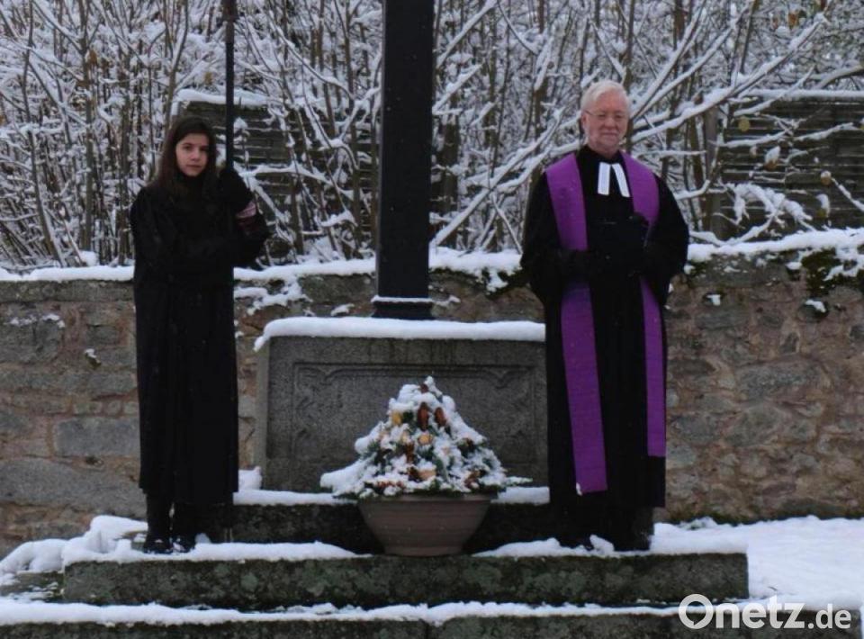 Gemeinsam mit den Gläubigen beging Pfarrer Wilfried Römischer den Gottesdienst zum Ewigkeitssonntag in der St. Johannes-Baptista-Kirche. Im Mittelpunkt seiner Predigt stand das Wort im Buch der Offenbarung 21, 1-7. Darin heißt es: „Und der auf dem Thron saß, sprach: Siehe ich mache alles neu." Nach dem Abendmahl zog ein langer Trauerzug, voran mit Posaunenchor, Kreuz und Pfarrer zum Friedhof zum Gräberbesuch durch die Angehörigen der Verstorbenen. Am Friedhofskreuz betete Pfarrer Römischer für die seit dem Ewigkeitssonntag 2021 bis heute verstorbenen 7 Frauen und 13 Männer. Die Trauerfeier endete mit dem Vaterunser, Segen und Choral des Posaunenchores. Auch in Flossenbürg fanden am Nachmittag ein Gottesdienst in der St. Pankratius-Kirche mit anschließendem Friedhofsgang statt.