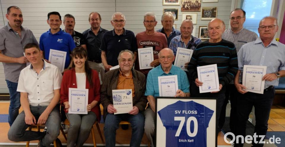 Die Ehrungen für treue Mitgliedschaft beim Sportverein 1946 standen in der Jahreshauptversammlung des SV Floß am Samstag in der Kegelanlage im Mittelpunkt. Vorsitzender Alexander Meier und Stellvertreter Stefan Kraus übergaben Ehrenurkunden, Ehrennadeln und Präsente. Mit Heinrich Riebel habe der Verein noch ein Gründungsmitglied aus dem Jahr 1946 vorzuweisen. Ihm wurde eine besondere Ehre zuteil. Auch ehemalige Aktive wie Erich Kett, Gerhard Meyer und Hans Neuber können heute auf eine 70-jährige Mitgliedschaft zurückblicken. Die Geehrten: 25 Jahre: Thomas Bäuml, Christian Beierl, Andreas Feiler, Christian Feiler, Andreas Fröhlich, Thomas Heindl, Manuel Kett, Oliver Lehner, Stefan Lehner, Felix Müller, Benjamin Reber, Sophia Scherm, Stefan Schwab und Franz Schwind. 40 Jahre: Stefan Grundler, Bernd Richter, Maria Schönberger, Dieter Seidl, Werner Sommer, Peter Späth, Josef Trißl, Siegfried Weig und Marianne Witzl. 50 Jahre: Manfred Bublat, Heinz Kett, Rudi Konz, Klaus Lindner, Gerd Meier, Werner Seidl, Helmut Witzl und Kurt Zscherner. 60 Jahre: Lothar Färber, Hermann Sommer und Willibald Witzl. 70 Jahre: Erich Kett, Gerhard Meyer und Hans Neuber. 75 Jahre: Heinrich Riebel. Bild)