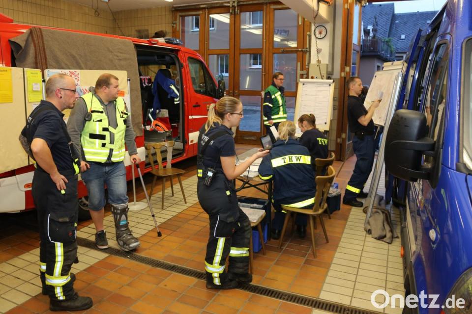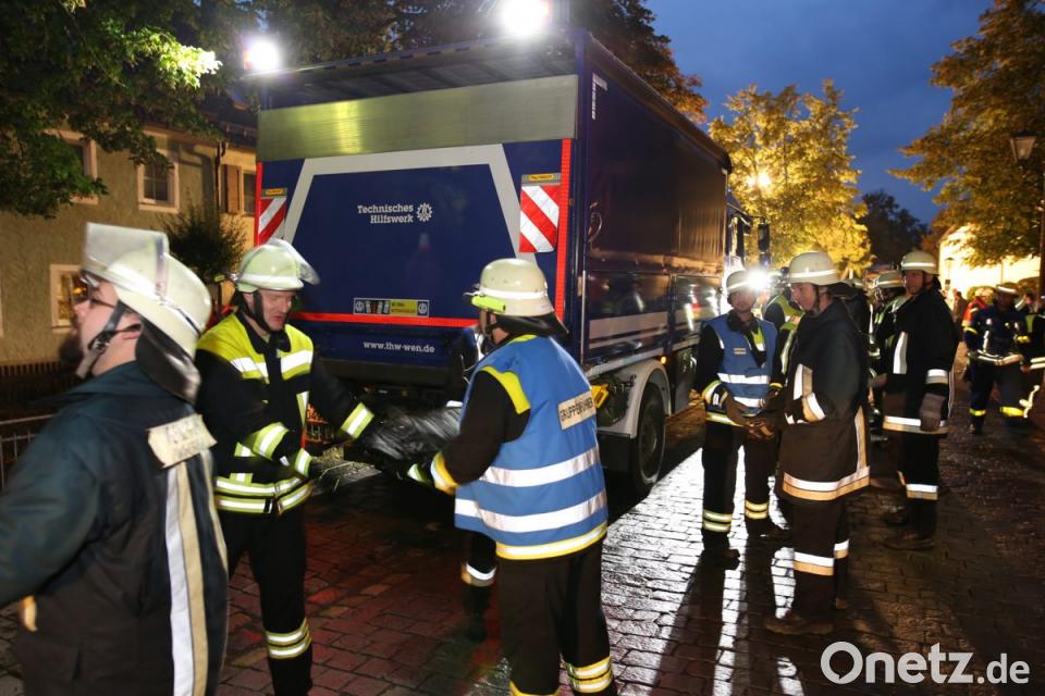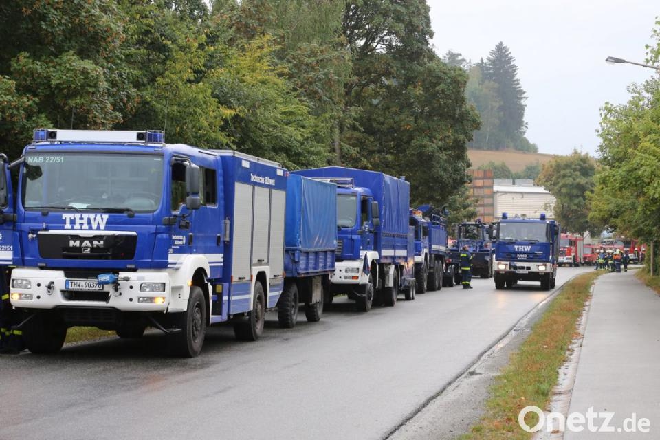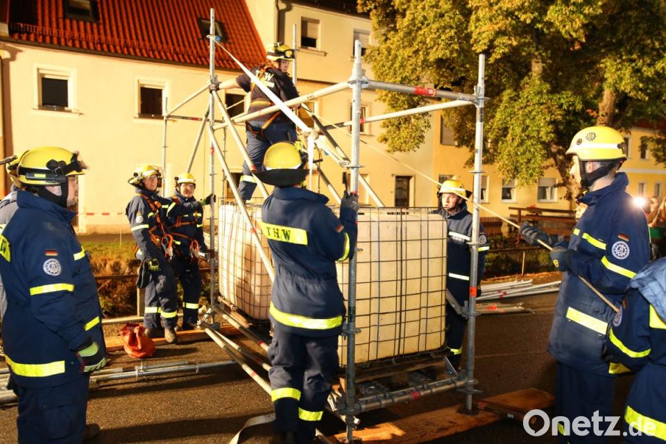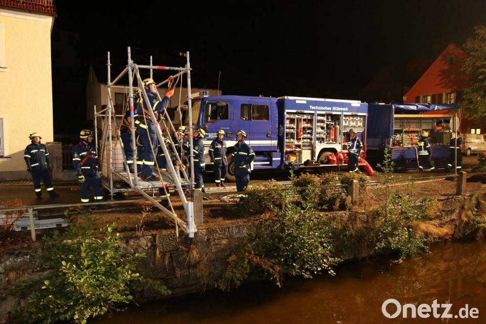Dauerregen seit Tagen, es gibt Unwetter und die Wasserstandspegel im Landkreis steigen. Diesen Katastrophenfall üben Kräfte des THW und zahlreicher Feuerwehren.