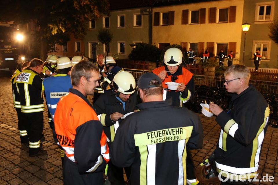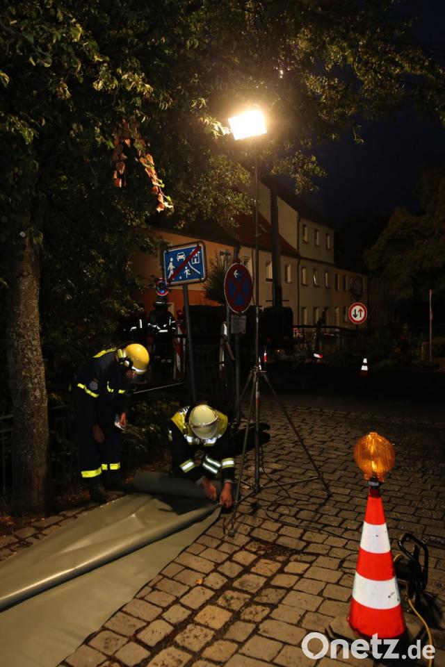 Für den realistischen Teil der Übung wählten die Verantwortlichen bewusst den Ortskern von Floß. Floß ist durch den sogenannten "Badewanneneffekt" besonders hochwassergefährdet und stand schon einmal vor 70 Jahren unter Wasser. Die Teilübung unter den Namen "Protecitiv sand 2018" startete gegen 18 Uhr. 30 Fahrzeuge mit 143 Einsatzkräften vom THW Weiden und Nabburg, des Roten Kreuzes und der Feuerwehren aus Floß, Flossenbürg, Störnstein, Wurz, Püchersreuth, Plößberg, Altenhammer, Waldkirch, Walthurn und Neudorf waren vor Ort. "Unsere Leute sollen für die drohende Lage gerüstet sein und mit dem Ablauf vertraut gemacht werden", erklärte der Flosser Kommandant Felix Müller.