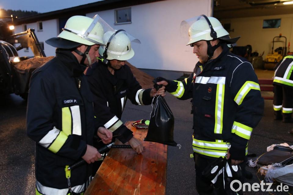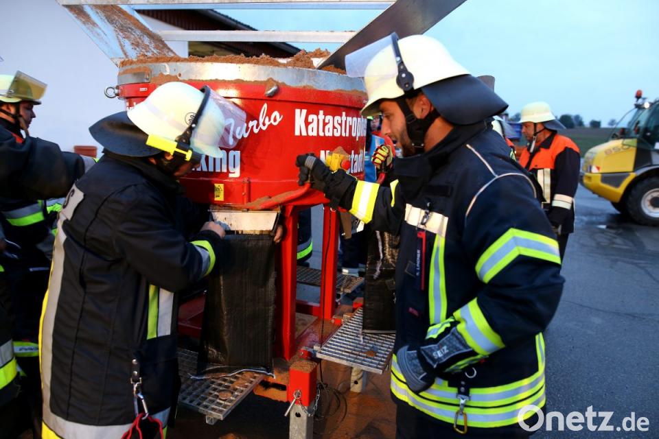Im Übungszeitraum bis 24 Uhr kam die 2017 neu beschaffte Sandsackfüllanlage des Landkreises am Bauhof zum Einsatz. Mehr als 4000 Sandsäcke machten die Helfer dank der Maschine fertig. Die Einsatzlogistik, die Sandsäcke zu füllen, an den Einsatzort zu transportieren und zu verbauen, interessierte die Führung ganz besonders. "Dies ist ein dynamischer Prozess, der sich von Stufe zu Stufe entwickelt", erläuterte Andreas Duschner vom THW.