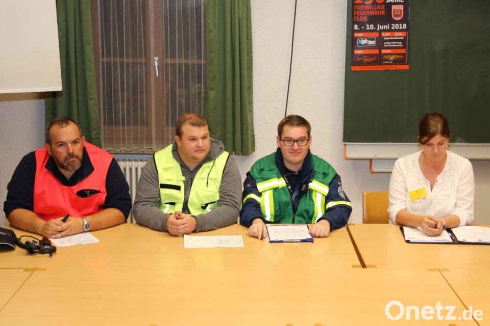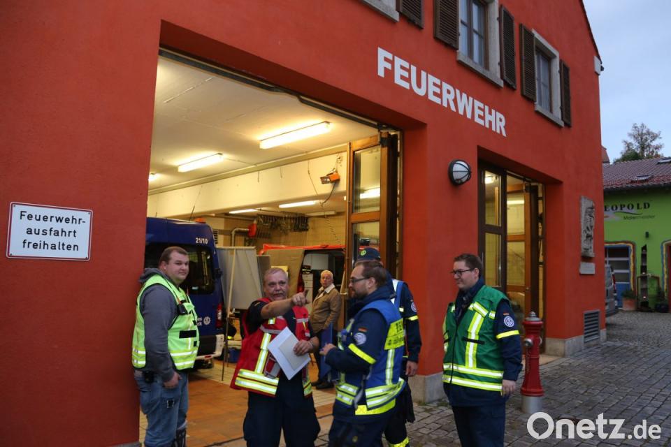 Die Helfer nahmen an, dass die "Floß" im Bereich der unteren Bachgasse über ihre Ufer tritt und die angrenzenden Gebäude vor den Wassermassen zu schützen sind. Die Leitstelle der Teilübung wurde im Feuerwehrhaus eingerichtet, um die teilnehmenden Kräfte zu disponieren und einzusetzen sowie eine ständige Verbindung mit der Führungsgruppe in Neuhaus zu garantieren.